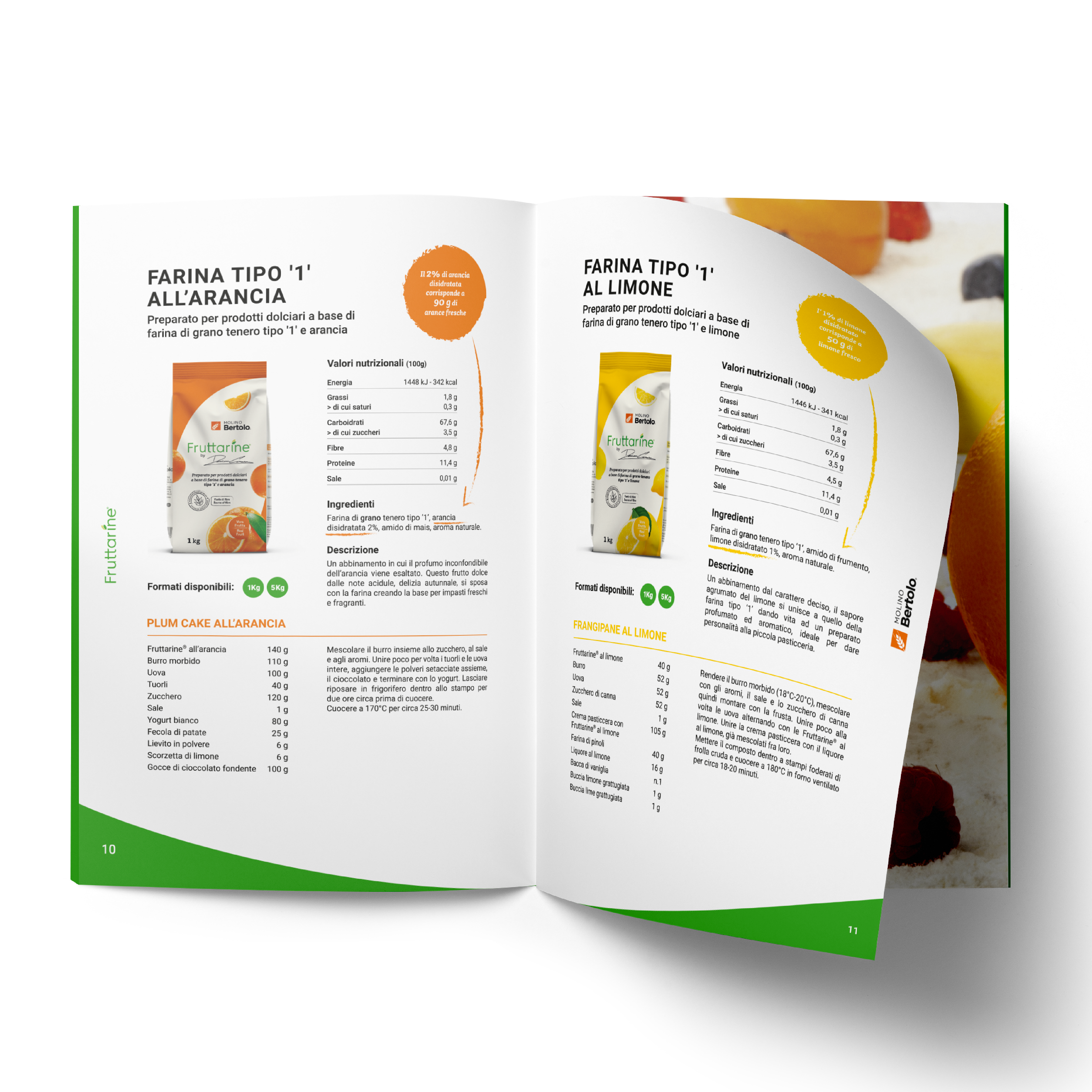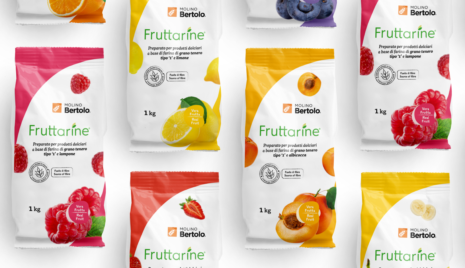 Le Fruttarine sono una gamma di farine con frutta disidratata. Un prodotto innovativo e di alta qualità pensato sia per pasticceri professionisti sia per i privati, l'obiettivo era quello di far riscoprire il piacere di cucinare dolci genuini e fruttati a partire già dall'impasto.