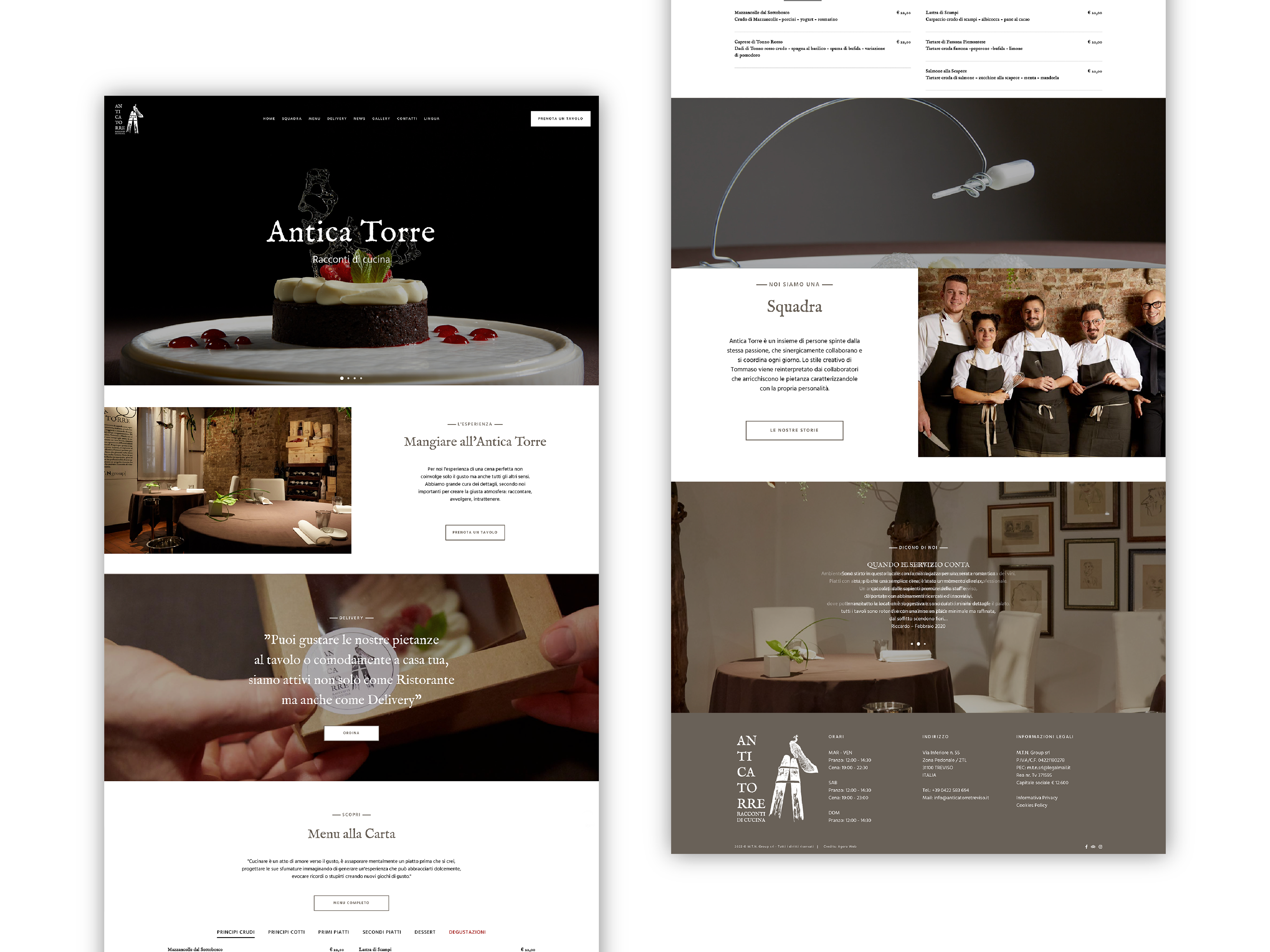 La collaborazione con il ristorante Antica Torre si è mossa su diversi livelli ma tutti hanno viaggiato verso un’unica direzione: dare una nuova percezione del ristorante ricreando un’identità coerente. Siamo partiti dalla comunicazione off-line curando il restyling dell’immagine coordinata e dell’allestimento interno ed esterno del locale, per poi passare a rinnovare in maniera coerente il visual curando lo stile generale del sito e allineando a sua volta la comunicazione social.